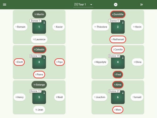 L'organisateur peut visualiser et contrôler à tout moment la place que doit occuper chaque joueur, et la donne qui doit être joué à la table.